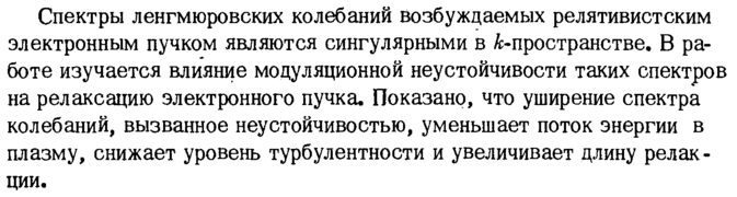 Спектры ленгмюровских колебаний возбуждаемых релятивистским электронным пучком являются сингулярными в ^-пространстве. В работе изучается влияние модуляционной неустойчивости таких спектров на релаксацию электронного пучка. Показано, что уширение спектра колебаний, вызванное неустойчивостью, уменьшает поток энергии в плазму, снижает уровень турбулентности и увеличивает длину редакции.