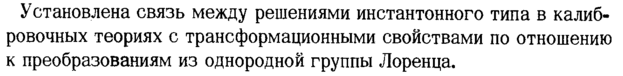 Установлена связь между решениями инстантонного типа в калибровочных теориях с трансформационными свойствами по отношению к преобразованиям из однородной группы Лоренца,