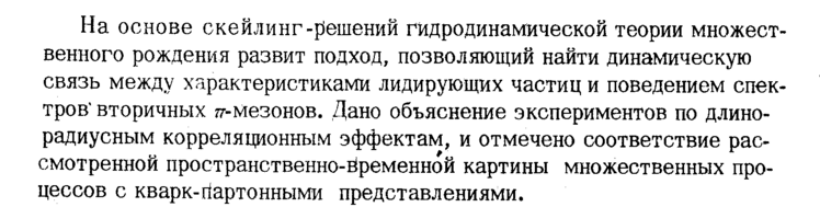 На основе скейлинг-решений гидродинамической теории множественного рождения развит подход, позволяющий найти динамическую связь между характеристиками лидирующих частиц и поведением спектров'вторичных 7г-мезонов. Дано объяснение экспериментов по длино-радиусным корреляционным эффектам, и отмечено соответствие рассмотренной пространственно-временной картины множественных процессов с кварк-картонными представлениями.