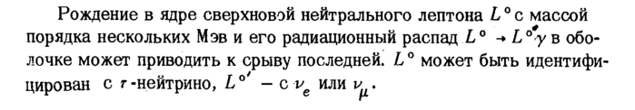 Рождение в ядре сверхновой нейтрального лептона L0 с массой порядка нескольких Мэв и его радиационный распад L 0 -> L °#у в оболочке может приводить к срыву последней. L° может быть идентифицирован с г-нейтрино, L0' с ve или ν .