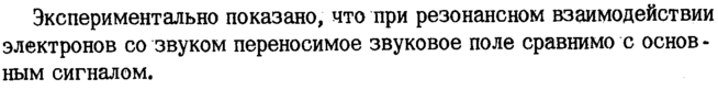 Экспериментально показано, что при резонансном взаимодействии электронов со звуком переносимое звуковое поле сравнимо с основ -ным сигналом.