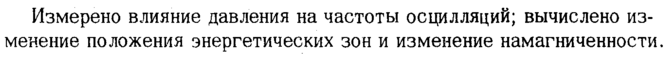 Измерено влияние давления на частоты осцилляций; вычислено изменение положения энергетических зон и изменение намагниченности.