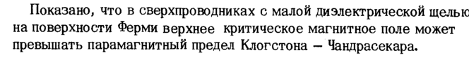 Показано, что в сверхпроводниках с малой диэлектрической щельк на поверхности Ферми верхнее критическое магнитное поле может превышать парамагнитный предел Клогстона Чандрасекара.
