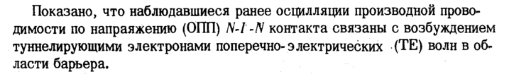 Показано, что наблюдавшиеся ранее осцилляции производной проводимости по напраяжению (ОПП) Ν-Γ-Ν контакта связаны с возбуждением туннелирующими электронами поперечно-электрических (ТЕ) волн в области барьера.