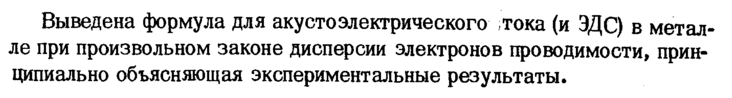 Выведена формула для акустоэлектрического тока (и ЭДС) в металле при произвольном законе дисперсии электронов проводимости, принципиально объясняющая экспериментальные результаты.