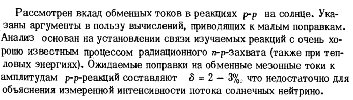 Рассмотрен вклад обменных токов в реакциях р-р на солнце. Указаны аргументы в пользу вычислений, приводящих к малым поправкам. Анализ основан на установлении связи изучаемых реакций с очень хорошо известным процессом радиационного л-р-захвата (также при тепловых энергиях). Ожидаемые поправки на обменные мезонные токи к амплитудам р-р-реакций составляют δ = 2 3%, что недостаточно для объяснения измеренной интенсивности потока солнечных нейтрино.