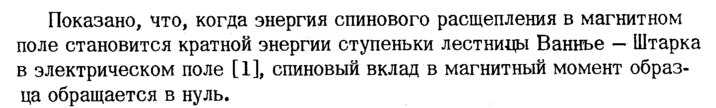 Показано, что, когда энергия спинового расщепления в магнитном поле становится кратной энергии ступеньки лестницы Ваннье Штарка в электрическом поле [1], спиновый вклад в магнитный момент образца обращается в нуль.
