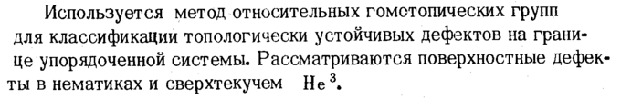 Используется метод относительных гомотопических групп для классификации топологически устойчивых дефектов на границе упорядоченной системы. Рассматриваются поверхностные дефекты в нематиках и сверхтекучем Не3.