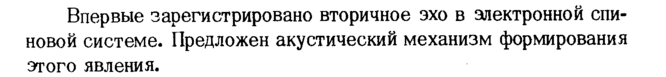 Впервые зарегистрировано вторичное эхо в электронной спиновой системе. Предложен акустический механизм формирования этого явления.