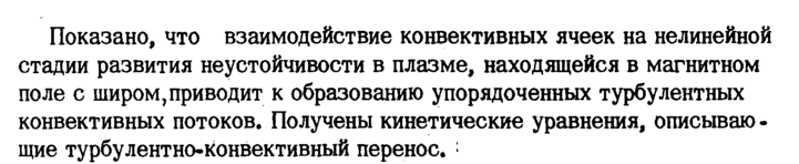 Показано, что взаимодействие конвективных ячеек на нелинейной стадии развития неустойчивости в плазме, находящейся в магнитном поле с широм, приводит к образованию упорядоченных турбулентных конвективных потоков. Получены кинетические уравнения, описываю -щие турбулентно-конвективный перенос, :