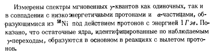 Измерены спектры мгновенных ^квантов как одиночных, так и в совпадении с низко энергетичными протонами и α-частицами, образующимися из ^Ni под действием протонов с энергией \Гэв. Показано, что остаточные ядра, идентифицированные по наблюдаемым ^переходам, образуются в основном в реакциях с вылетом протонов.
