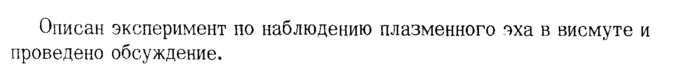 Описан эксперимент по наблюдению плазменного эха в висмуте и проведено обсуждение.