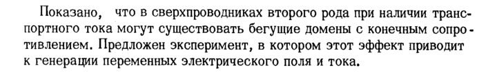 Показано, что в сверхпроводниках второго рода при наличии транспортного тока могут существовать бегущие домены с конечным сопро -тивлением. Предложен эксперимент, в котором этот эффект приводит к генерации переменных электрического поля и тока.