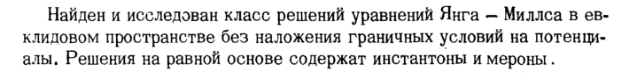 Решения классических уравнений Янга-Миллса, содержащие инстантоны и мероны