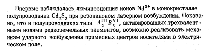 Резонансное возбуждение Nd3+ в монокристалле полупроводника Cd2S3