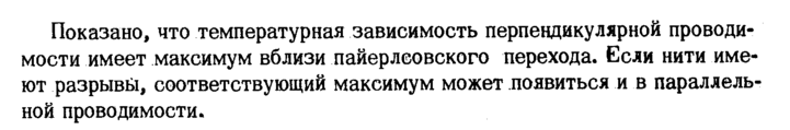 Показано, что температурная зависимость перпендикулярной проводимости имеет максимум вблизи пайерлсовского перехода. Если нити имеют разрывы, соответствующий максимум может появиться и в параллельной проводимости.