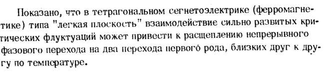 Показано, что в тетрагональном сегнетоэлектрике (ферромагнетике) типа "легкая плоскость" взаимодействие сильно развитых критических флуктуации может привести к расщеплению непрерывного фазового перехода на два перехода первого рода, близких друг к другу по температуре.