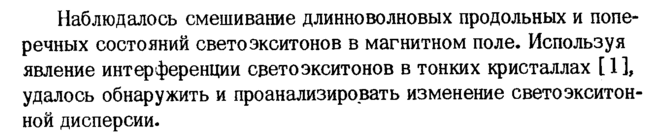 Наблюдалось смешивание длинноволновых продольных и поперечных состояний светоэкситонов в магнитном поле. Используя явление интерференции светоэкситонов в тонких кристаллах [1], удалось обнаружить и проанализировать изменение светоэкситон-ной дисперсии.