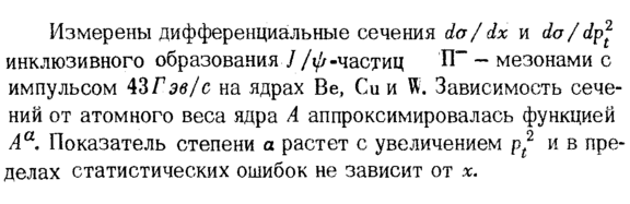 Измерены дифференциальные сечения do/dx и do/φ2 инклюзивного образования /Д£-частиц П~ мезонами с импульсом 43 Гзв/с на ядрах Be, Си и W. Зависимость сечений от атомного веса ядра Л аппроксимировалась функцией Аа. Показатель степени α растет с увеличением рг2 и в пределах статистических ошибок не зависит от х.