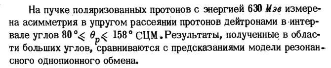 'Асимметрия в упругом рассеянии протонов дейтронами при энергии 630 Мэв