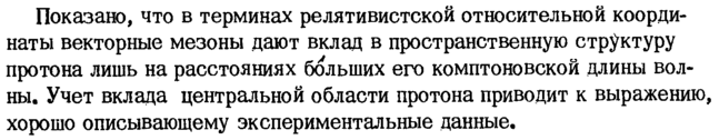 Показано, что в терминах релятивистской относительной координаты векторные мезоны дают вклад в пространственную структуру протона лишь на расстояниях больших его комптоновской длины волны. Учет вклада центральной области протона приводит к выражению, хорошо описывающему экспериментальные данные.