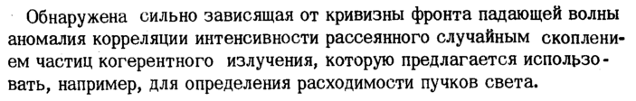 Обнаружена сильно зависящая от кривизны фронта падающей волны аномалия корреляции интенсивности рассеянного случайным скоплением частиц когерентного излучения, которую предлагается использовать, например, для определения расходимости пучков света.