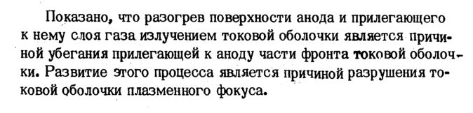 Показано, что разогрев поверхности анода и прилегающего к нему слоя газа излучением токовой оболочки является причиной убегания прилегающей к аноду части фронта токовой оболочки. Развитие этого процесса является причиной разрушения токовой оболочки плазменного фокуса.