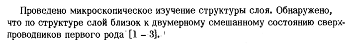Проведено микроскопическое изучение структуры слоя. Обнаружено, что по структуре слой близок к двумерному смешанному состоянию сверхпроводников первого рода' [1 3]. 1