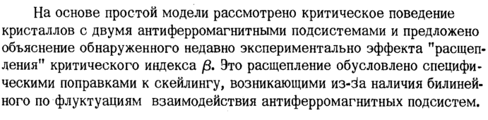 На основе простой модели рассмотрено критическое поведение кристаллов с двумя антиферромагнитными подсистемами и предложено объяснение обнаруженного недавно экспериментально эффекта "расщепления" критического индекса β. Это расщепление обусловлено специфическими поправками к скейлингу, возникающими из-за наличия билинейного по флуктуациям взаимодействия антиферромагнитных подсистем.