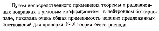 Путем непосредственного применения теоремы о радиационных поправках к угловым коэффициентам в нейтронном бета-распаде, показана очень общая применимость недавно предложенных соотношений для проверки V* А теории этого распада