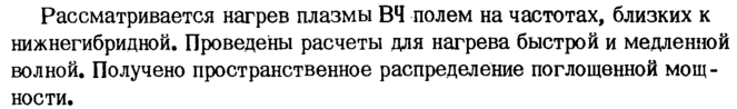 Рассматривается нагрев плазмы ВЧ полем на частотах, близких к нижнегибридной. Проведены расчеты для нагрева быстрой и медленной волной. Получено пространственное распределение поглощенной мощности.