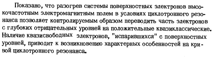 Показано, что разогрев системы поверхностных электронов высокочастотным электромагнитным полем в условиях циклотронного резонанса позволяет контролируемым образом переводить часть электронов с глубоких отрицательных уровней на положительные квазиклассические. Наличие квазисвободных электронов, "испарившихся" с поверхностных уровней, приводит к возникновению характерных особенностей на кривой циклотронного резонанса.
