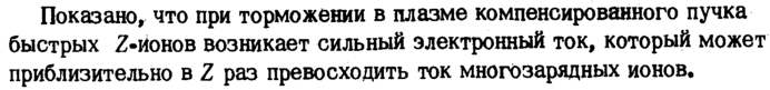 Показано, что при торможении в плазме компенсированного пучка быстрых Z-йонов возникает сильный электронный ток, который может приблизительно в Ζ раз превосходить ток многозарядных ионов.