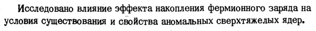 Исследовано влияние эффекта накопления фермионного заряда на условия существования и свойства аномальных сверхтяжелых ядер.