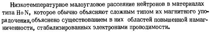 Низкотемпературное малоугловое рассеяние нейтронов в материалах типа Но N, которое обычно объясняют сложным типом их магнитного упорядочения, объяснено существованием в них областей повышенной намагниченности, стабилизированных электронами проводимости.