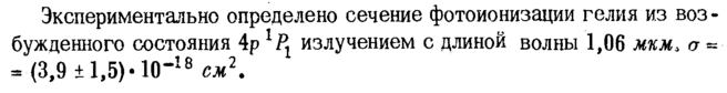 Экспериментально определено сечение фотоионизации гелия из возбужденного состояния 4р ιΡχ излучением с длиной волны 1,06 мкм* σ « = (3,9 ±1,5)· ΙΟ"18 см2.