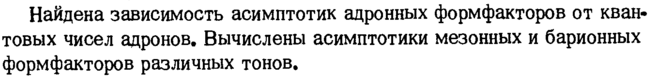 Найдена зависимость асимптотик адронных формфакторов от квантовых чисел адронов. Вычислены асимптотики мезонных и барионных формфакторов различных тонов.