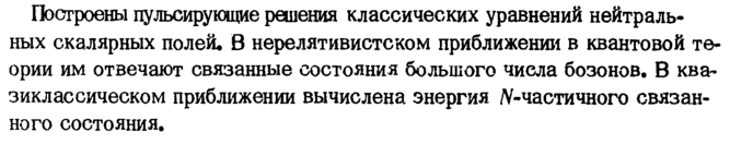 Построены пульсирующие решения классических уравнений нейтральных скалярных полей. В нерелятивистском приближении в квантовой теории им отвечают связанные состояния большого числа бозонов. В квазиклассическом приближении вычислена энергия /V-частичного связанного состояния.
