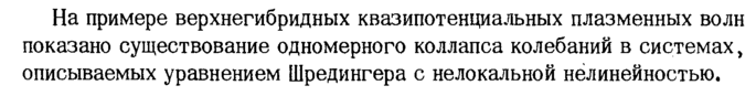 На примере верхнегибридных квазипотенциальных плазменных волн показано существование одномерного коллапса колебаний в системах, описываемых уравнением Шредингера с нелокальной нелинейностью.