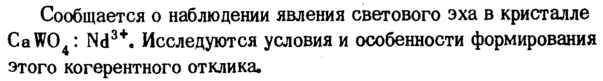 Сообщается о наблюдении явления светового эха в кристалле CaW0