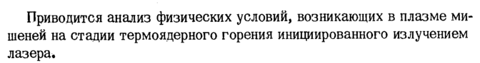 Приводится анализ физических условий, возникающих в плазме ми шеней на стадии термоядерного горения инициированного излучением лазера.
