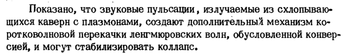 Показано, что звуковые пульсации, излучаемые из схлопываю-щихся каверн с плазмонами, создают дополнительный механизм коротковолновой перекачки ленгмюровских волн, обусловленной конверсией, и могут стабилизировать коллапс.