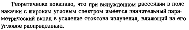 Вынужденное рассеяние при возбуждении излучением с широким угловым спектром