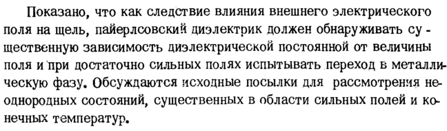 Показано, что как следствие влияния внешнего электрического поля на щель, пайерлсовский диэлектрик должен обнаруживать су -щественную зависимость диэлектрической постоянной от величины поля и при достаточно сильных полях испытывать переход в металлическую фазу. Обсуждаются исходные посылки для рассмотрения неоднородных состояний, существенных в области сильных полей и конечных температур.