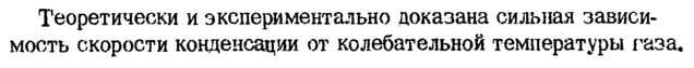 Теоретически и экспериментально доказана сильная зависимость скорости конденсации от колебательной температуры газа.