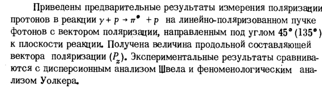 Приведены предварительные результаты измерения поляризации протонов в реакции у+ ρ -> π* + ρ на линейно-поляризованном пучке фотонов с вектором поляризации, направленным под углом 45* (135е) к плоскости реакции. Получена величина продольной составляющей вектора поляризации (Р). Экспериментальные результаты сравниваются с дисперсионным анализом Щвела и феноменологическим анализом Уолкера.