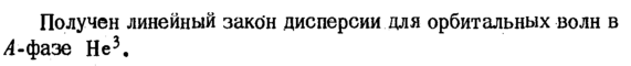 Получен линейный закон дисперсии для орбитальных волн в 4-фазе Не