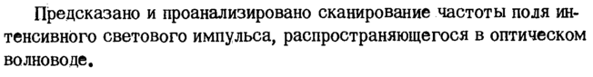 Предсказано и проанализировано сканирование частоты поля интенсивного светового импульса, распространяющегося в оптическом волноводе.