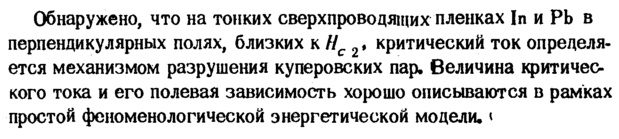 Обнаружено, что на тонких сверхпроводящих пленках In и РЬ в перпендикулярных полях, близких к Нс 2» критический ток определяется механизмом разрушения куперовских пар. Величина критического тока и его полевая зависимость хорошо описываются в рамках простой феноменологической энергетической модели, ι