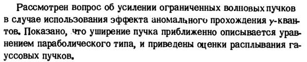 Рассмотрен вопрос об усилении ограниченных волновых пучков в случае использования эффекта аномального прохождения у-кван-тов. Показано, что уширение пучка приближенно описывается уравнением параболического типа, и приведены оценки расплывания гауссовых пучков.